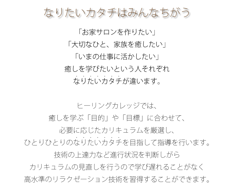 ヒーリングカレッジでは少人数制(最大4 名)のレッスンを行っています。